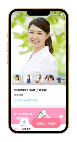 お相手が見つかったら、お見合い申請を行い、マッチングが成立しましたらお見合いへと進みます。